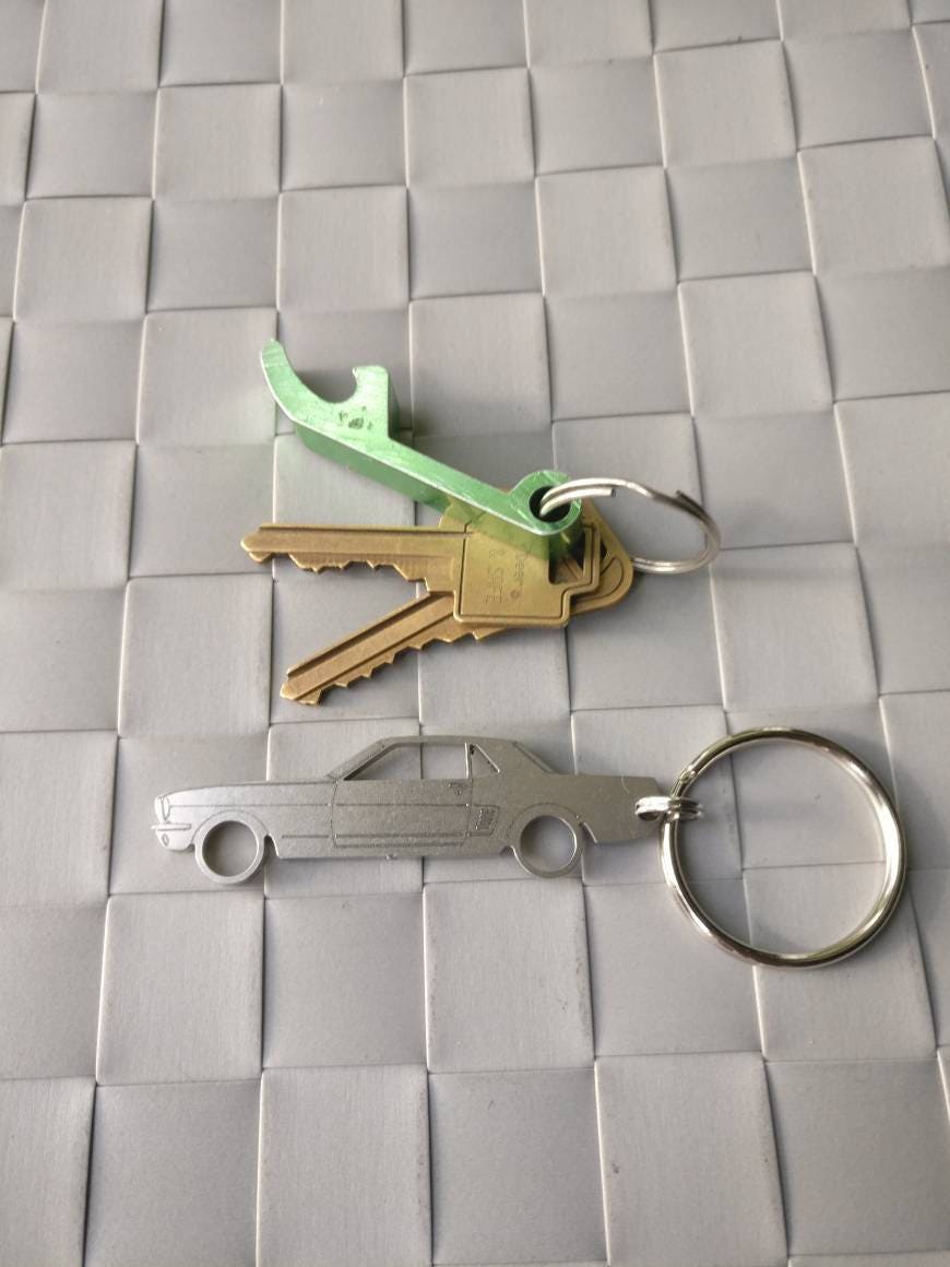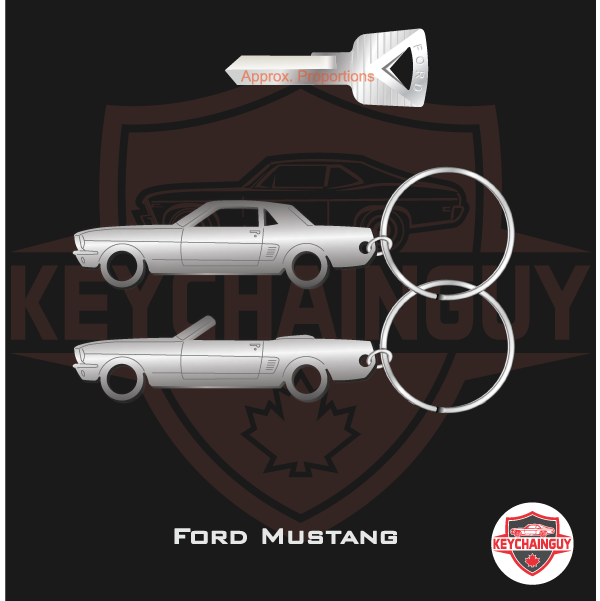1964 - 1966 Ford Mustang keychain. CNC laser cut from 12ga (0.105in) Stainless Steel. Tumble polished as a final finish. Comes with 1.25in key ring.
