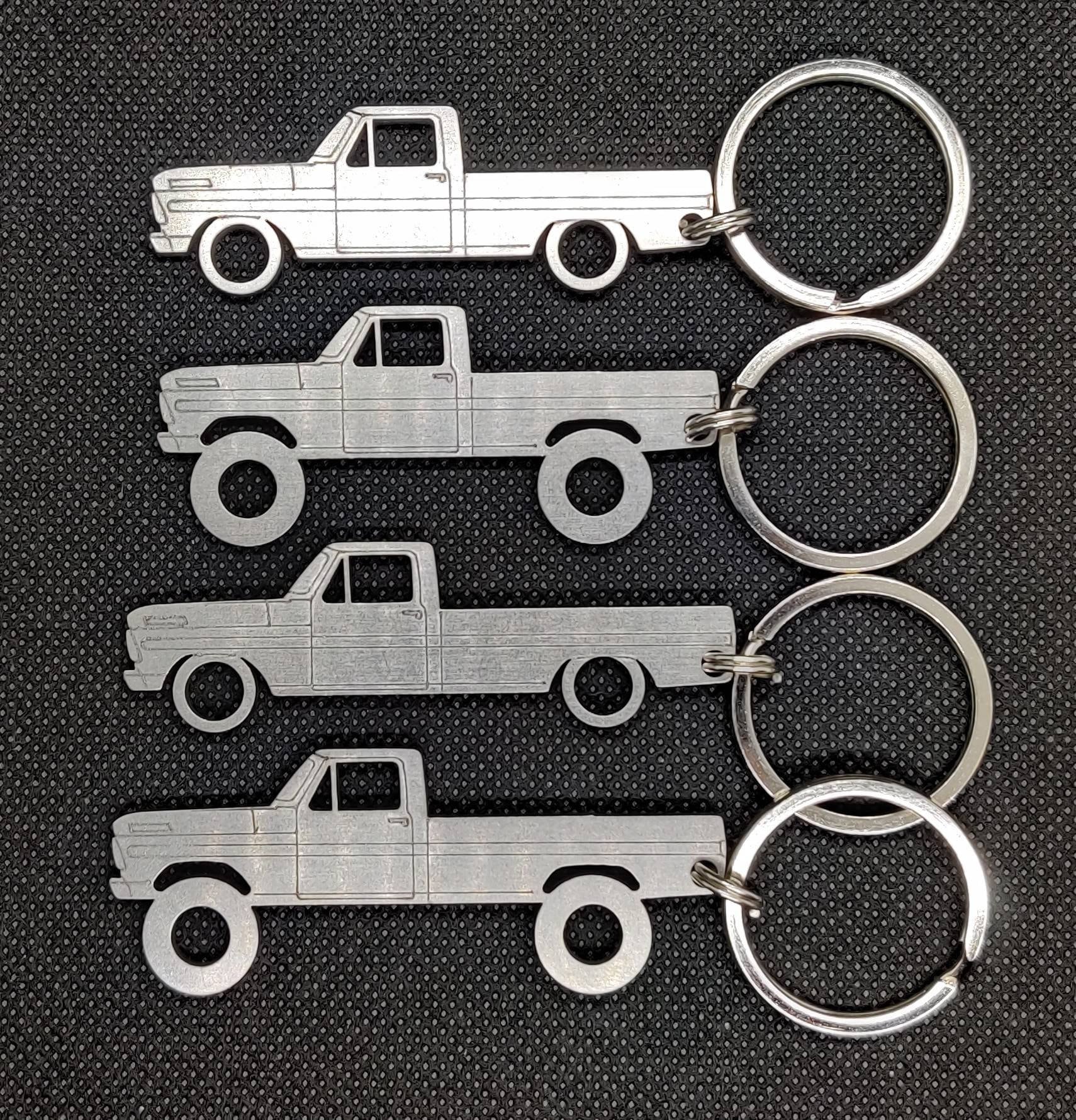 CNC laser cut from 12ga (0.105in) Stainless Steel. Tumble polished as a final finish. Comes with 1.25in key ring.