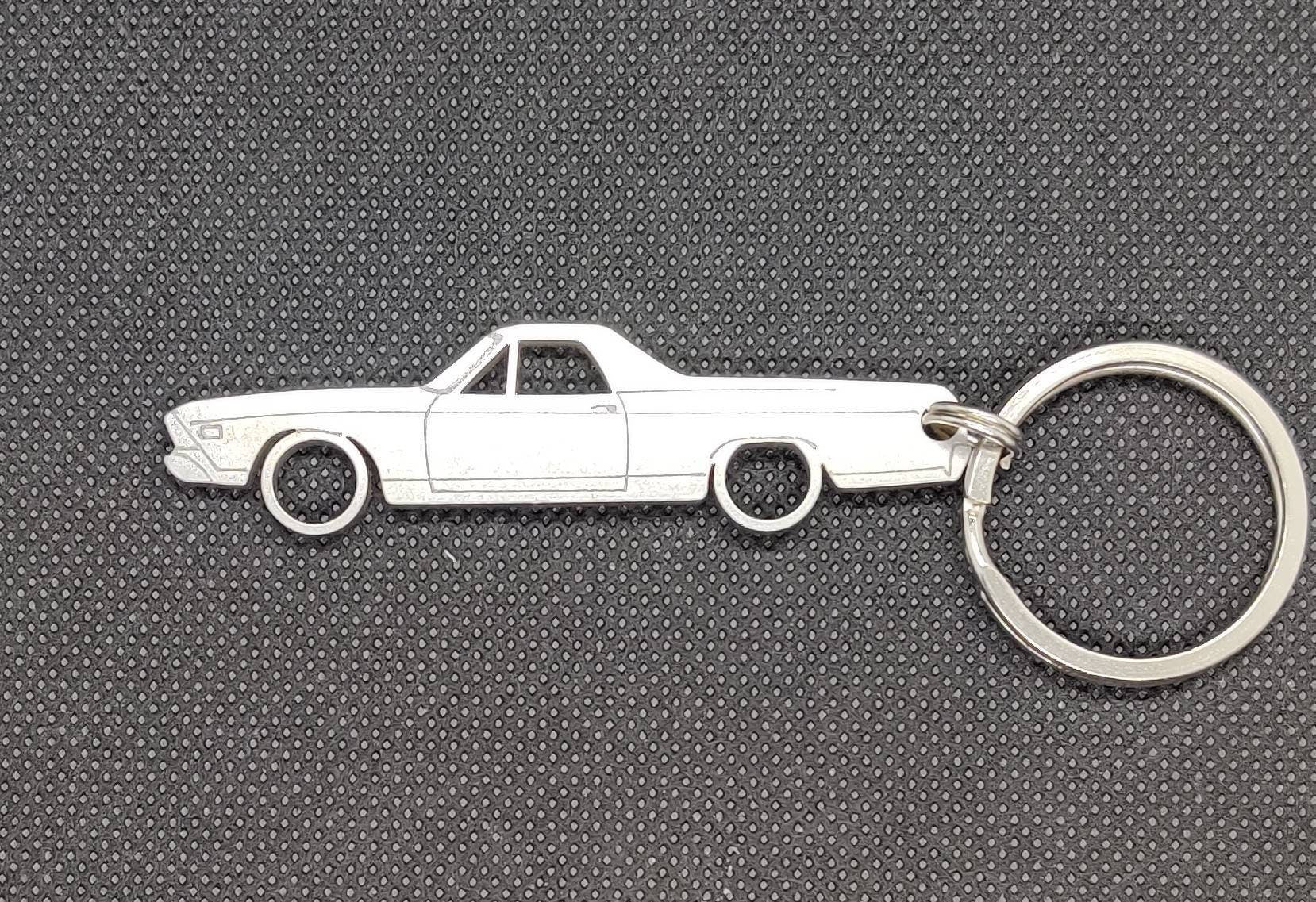 CNC laser cut from 12ga (0.105in) Stainless Steel. Tumble polished as a final finish. Comes with 1.25in key ring.