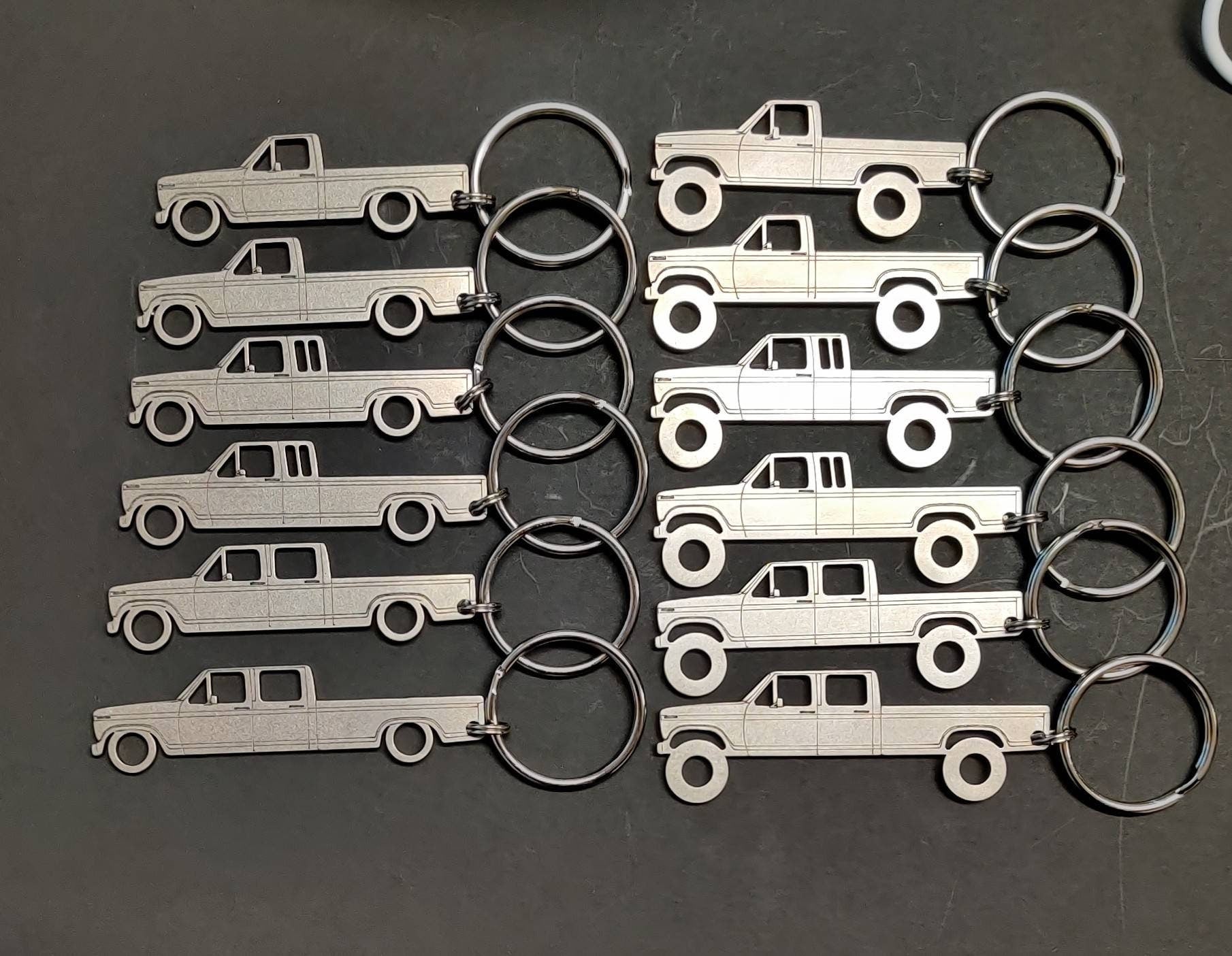 CNC laser cut from 12ga (0.105in) Stainless Steel. Tumble polished as a final finish. Comes with 1.25in key ring.