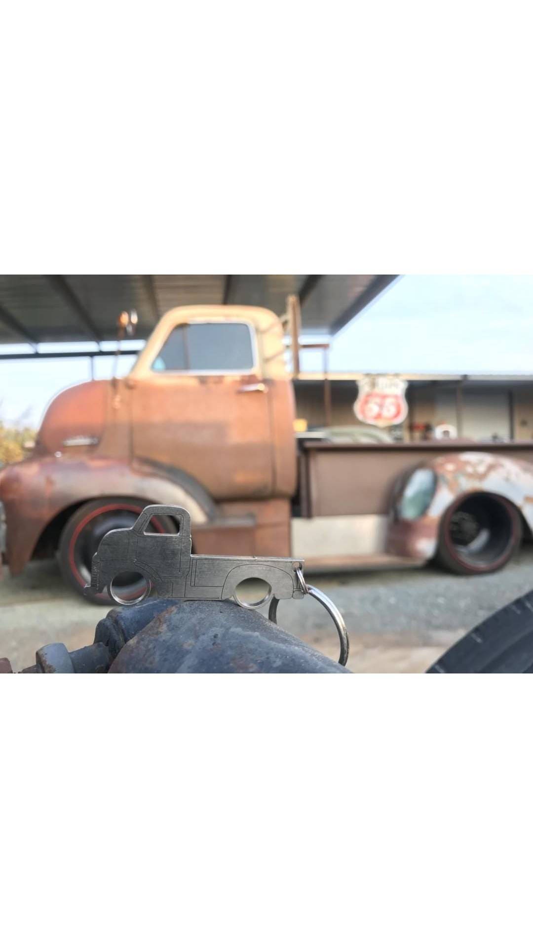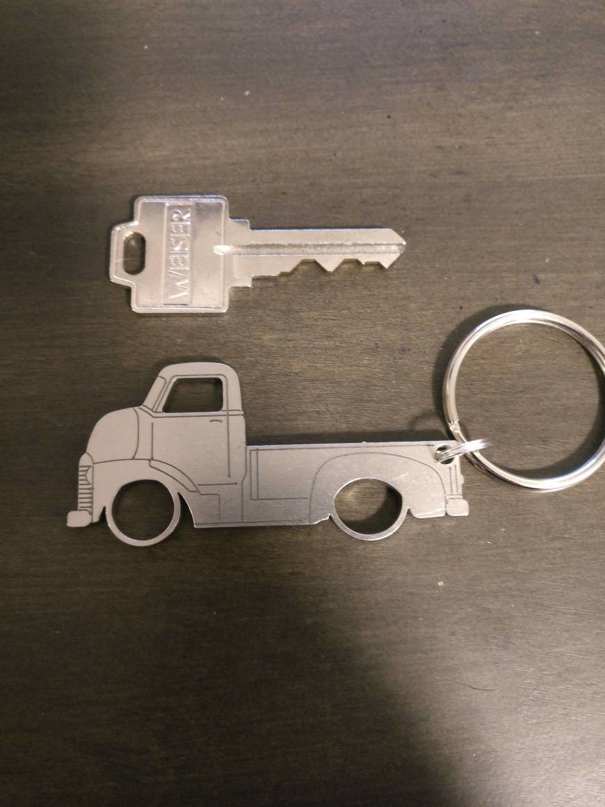 CNC laser cut from 12ga (0.105in) Stainless Steel. Tumble polished as a final finish. Comes with 1.25in key ring.