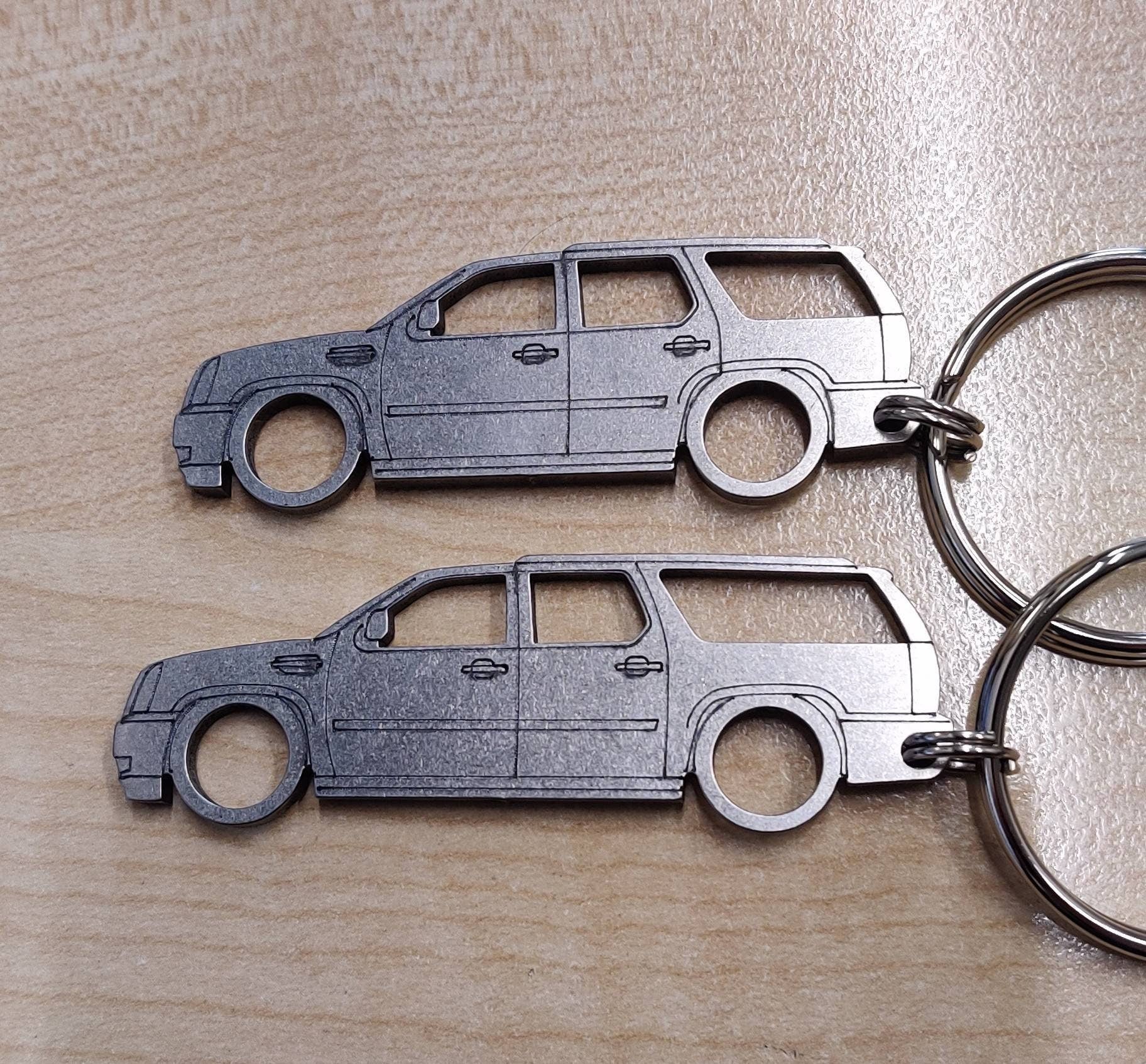 CNC laser cut from 12ga (0.105in) Stainless Steel. Tumble polished as a final finish. Comes with 1.25in key ring.