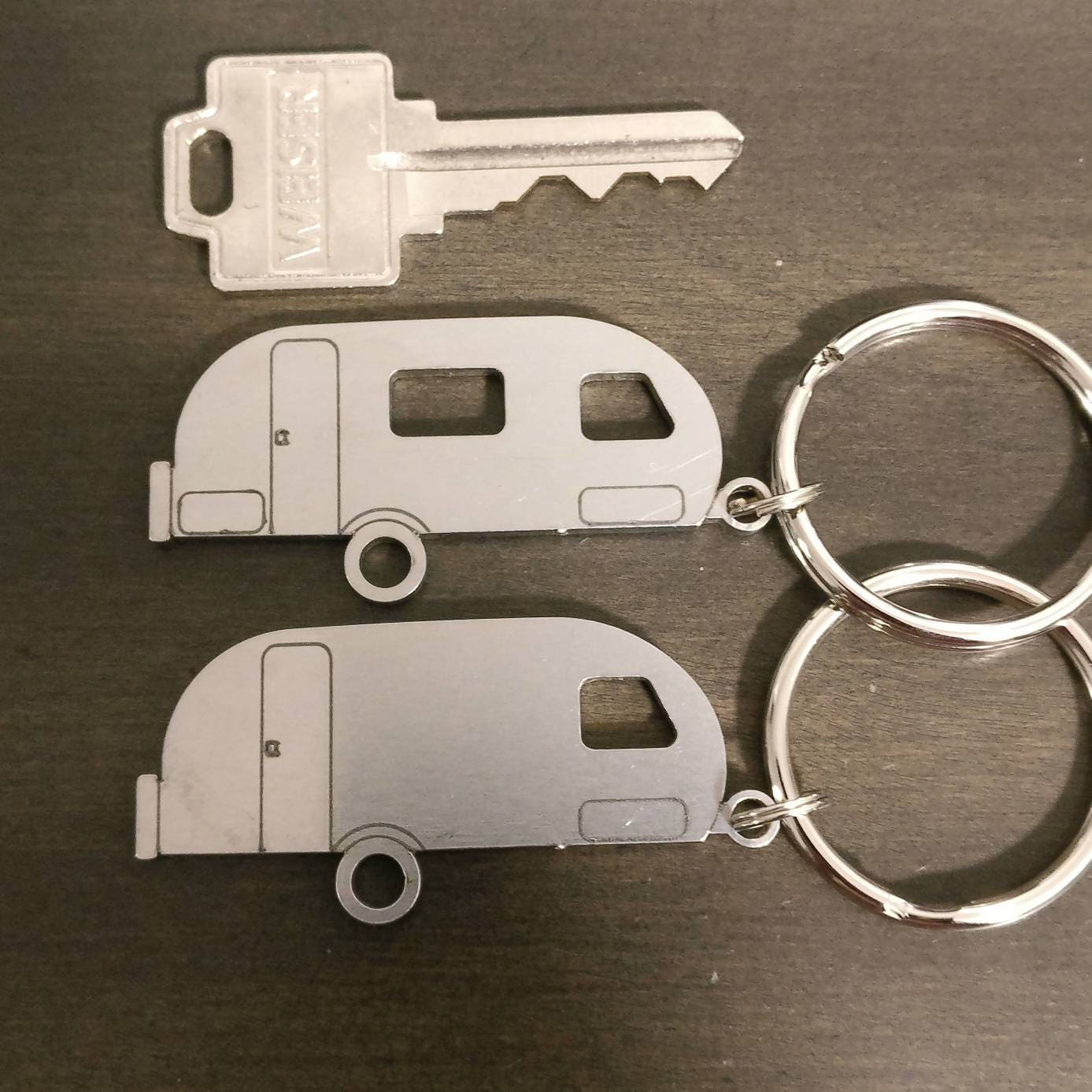 CNC laser cut from 12ga (0.105in) Stainless Steel. Tumble polished as a final finish. Comes with 1.25in key ring.