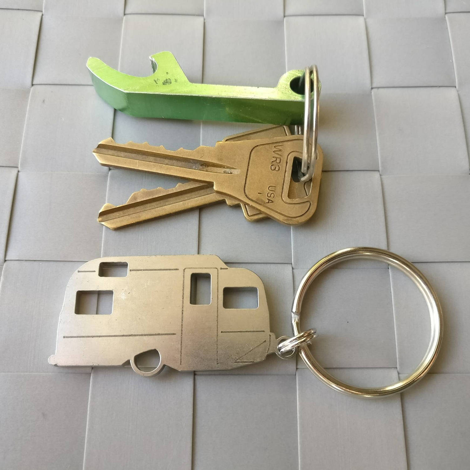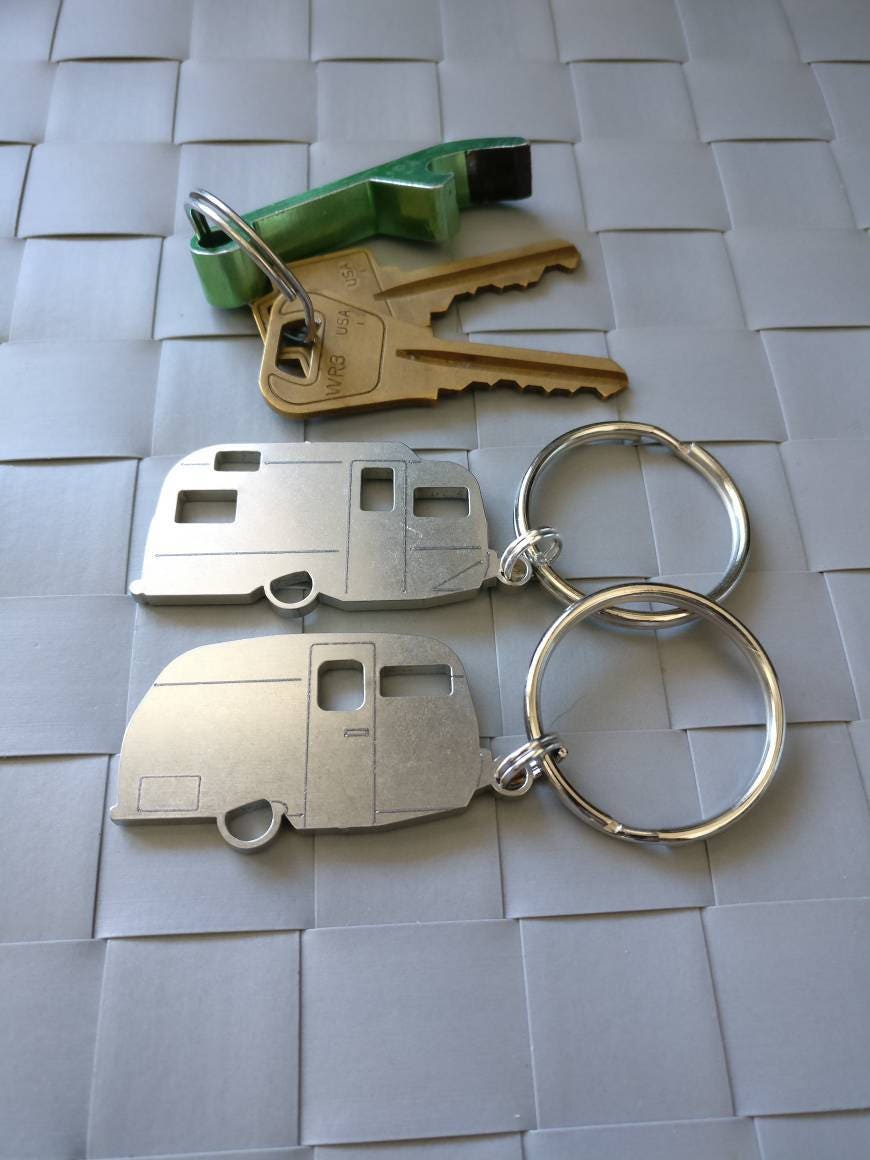 CNC laser cut from 12ga (0.105in) Stainless Steel. Tumble polished as a final finish. Comes with 1.25in key ring.