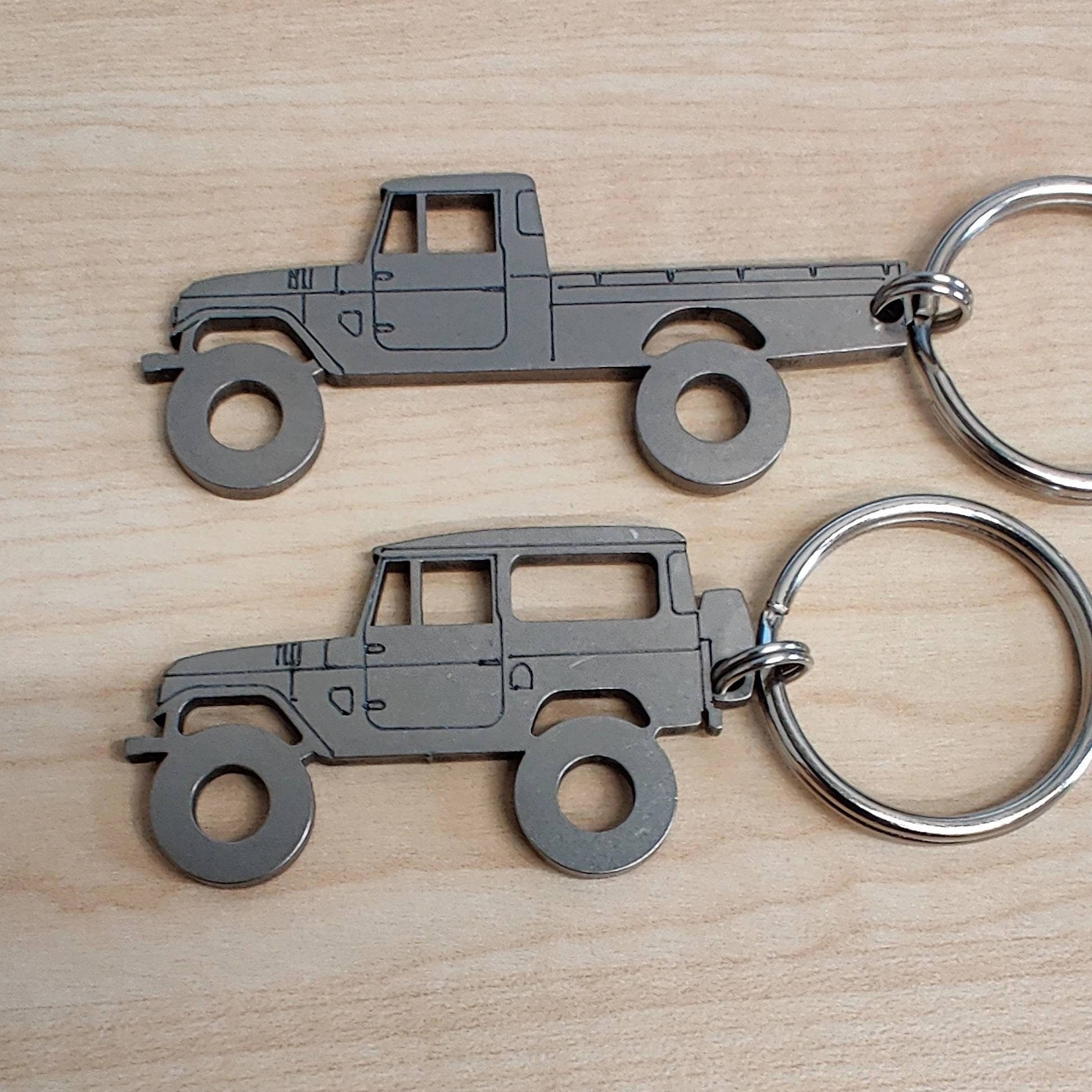 CNC laser cut from 12ga (0.105in) Stainless Steel. Tumble polished as a final finish. Comes with 1.25in key ring.