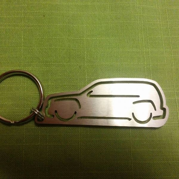 CNC laser cut from 12ga (0.105in) Stainless Steel. Tumble polished as a final finish. Comes with 1.25in key ring.